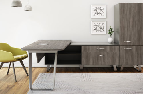 Blending classic features with a mid-century modern twist, Ribbon is anchored by a sleek base that slightly twists and tapers creating a design that plays with angles and perceptions. Loop or hairpin leg options on a variety of workstation configurations are offered with or without storage to suit any number of spaces. Ribbon’s signature design scheme is also translated to other modules of the private office, including curvilinear modesty panels, storage units, and one-of-a-kind handle pulls.