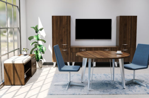 Complementary meeting tables feature Ribbon’s signature leg for design continuity throughout spaces. Round, square and rounded-square table tops are offered in 42”, 48”, 54” and 60” diameter sizes while rectangular, rounded-rectangular and boat-shaped tops are available in sizes starting at 36” x 72” and ranging up to 60” x 240” – further emphasizing Ribbon’s appeal. A variety of power options keep things charged and at the ready, transforming meeting tables into active workspaces.