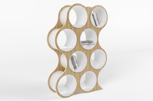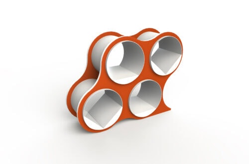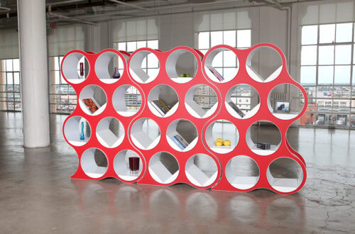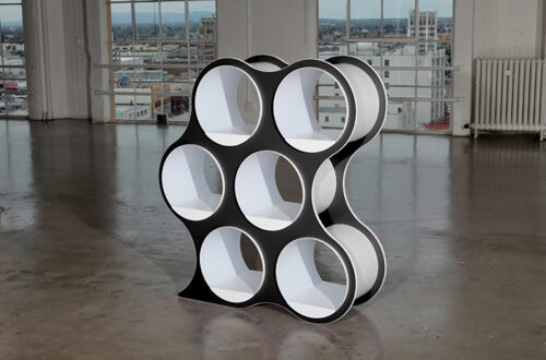 Bolla Storage, designed by David Winston, is an amazing combination of geometry and physics. Inner panels coil into place, and the natural compressive force holds the shelving system together—no tools required. Lightweight yet sturdy, Bolla works as both storage and a room divider, with adjustable, repositionable shelves and extra shelf options for custom configurations. Its bold colors and striking form make it as eye-catching as it is functional.