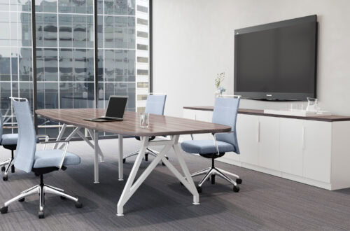 Kayak Conference Tables keep teams connected and productive. Their boat-like shape ensures clear sightlines, while signature bases and adjustable levelers provide comfort and stability. Durable laminate tops, tough edge banding, and powder-coated steel legs stand up to daily use, and optional power access keeps work flowing. Available in multiple finishes and lengths, Kayak combines style, function, and collaboration in one sleek package.