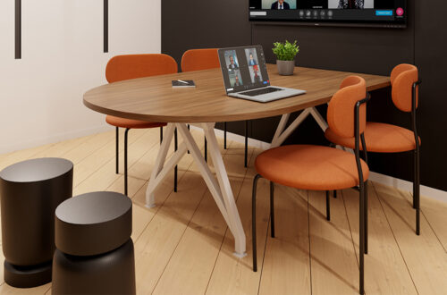 Bring your team together anywhere with TeleMeet. Designed for today’s video-driven workplaces, this conference table with media panel makes virtual meetings effortless—no costly wall mounts required. Choose from multiple sizes and finishes to fit your space, while durable materials ensure long-lasting performance. With its modern design, flexible placement, and optional plug-and-play connections, TeleMeet helps every meeting start on the right note.