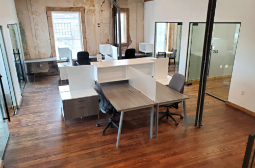 25N Coworking’s 23,000-square-foot space in Waco, Texas offers private meeting spaces, lounge areas, personal storage, ergonomic seating, and 75 office configurations to meet the needs of individuals and teams alike. The three-story multi-purpose environment fills a need for high-end office space in Waco and its booming downtown location. The team at DeskMakers worked with Workplace Studios who specified product for four conference rooms, 12 café tables, 39 shared offices, 33 private offices, and 38 hot desks for the project.