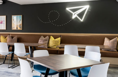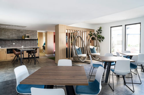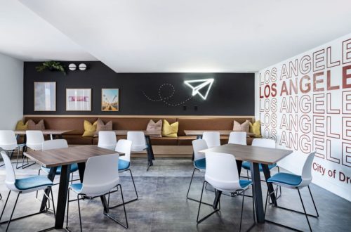 Tasked with creating a unique and functional living space for those attending the University of Southern California, Pacific Office Interiors partnered with Level Up Interiors to use DeskMakers product on this recent installation. USC West 27th Place is a LEED Platinum Certified apartment community near USC that provides a welcoming, healthy, and cheerful environment for students. Pacific Office Interior’s goal was to promote a relaxing atmosphere conducive to learning by creating comfortable living areas, collaborative and private learning spaces, as well as functional offices for staff and onsite management.