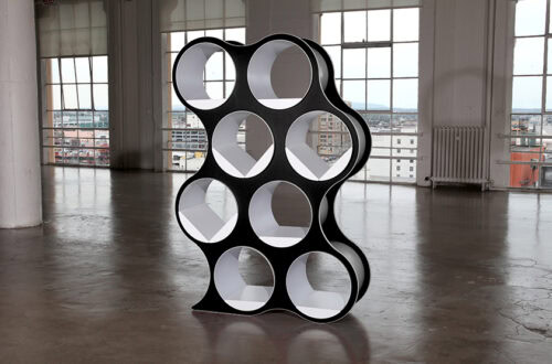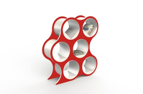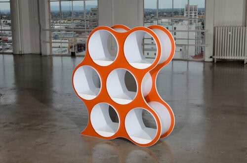 Bolla Storage, designed by David Winston, is an amazing combination of geometry and physics. Inner panels coil into place, and the natural compressive force holds the shelving system together—no tools required. Lightweight yet sturdy, Bolla works as both storage and a room divider, with adjustable, repositionable shelves and extra shelf options for custom configurations. Its bold colors and striking form make it as eye-catching as it is functional.