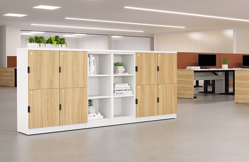 Catalina storage solutions integrate seamlessly with DeskMakers open plan systems to provide functional, flexible, affordable options for both personal and communal storage requirements. Lockers, cubbies and work islands come in a variety of shapes, sizes and configurations allowing easy planning. Modular by design, Catalina storage provides a level of customization ideal for today’s dynamic work environments.