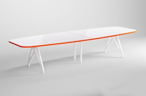 Kayak Conference Tables keep teams connected and productive. Their boat-like shape ensures clear sightlines, while signature bases and adjustable levelers provide comfort and stability. Durable laminate tops, tough edge banding, and powder-coated steel legs stand up to daily use, and optional power access keeps work flowing. Available in multiple finishes and lengths, Kayak combines style, function, and collaboration in one sleek package.