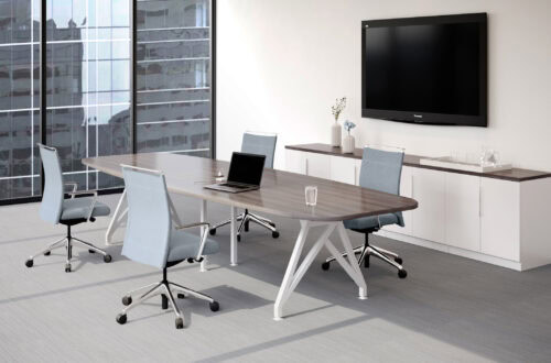 Kayak Conference Tables keep teams connected and productive. Their boat-like shape ensures clear sightlines, while signature bases and adjustable levelers provide comfort and stability. Durable laminate tops, tough edge banding, and powder-coated steel legs stand up to daily use, and optional power access keeps work flowing. Available in multiple finishes and lengths, Kayak combines style, function, and collaboration in one sleek package.
