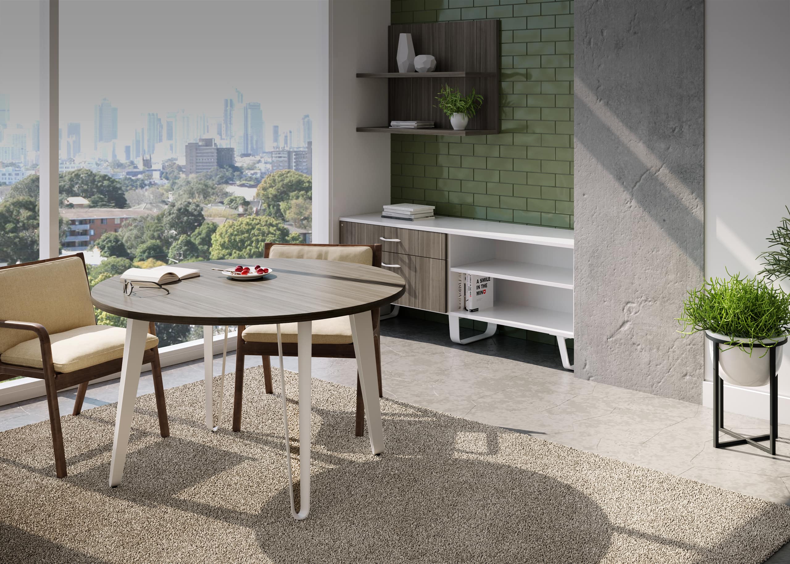 A sleek and signature base design that slightly twists and tapers creates the striking visual that is Ribbon’s namesake. Designed for DeskMakers by Henner Jahns, Ribbon Tables blend classic design with a mid-century modern aesthetic ideal in any space. Offered in a mix of sizes and material options, Ribbon exemplifies DeskMakers’ design flexibility for a collection that