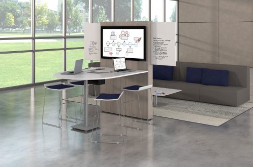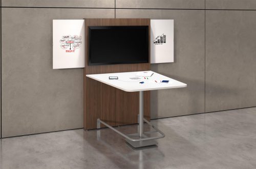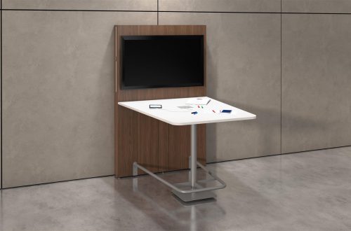 Narrative is a wall-mounted meeting solution designed for video conferencing, collaboration, and quick touchpoints. Offered in multiple heights, it creates a clean, efficient footprint while keeping technology within reach. Optional power integration and slide-out whiteboards support brainstorming, presentations, or virtual check-ins without breaking the flow. Whether used in open plan areas, private offices, or shared team zones, Narrative helps every interaction feel more focused and connected.