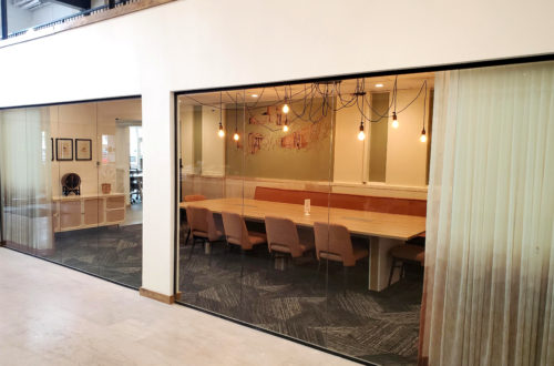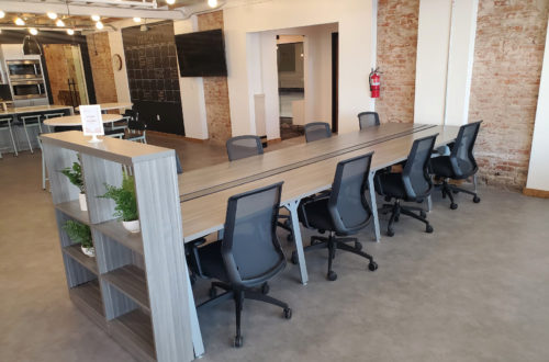 25N Coworking’s 23,000-square-foot space in Waco, Texas offers private meeting spaces, lounge areas, personal storage, ergonomic seating, and 75 office configurations to meet the needs of individuals and teams alike. The three-story multi-purpose environment fills a need for high-end office space in Waco and its booming downtown location. The team at DeskMakers worked with Workplace Studios who specified product for four conference rooms, 12 café tables, 39 shared offices, 33 private offices, and 38 hot desks for the project.