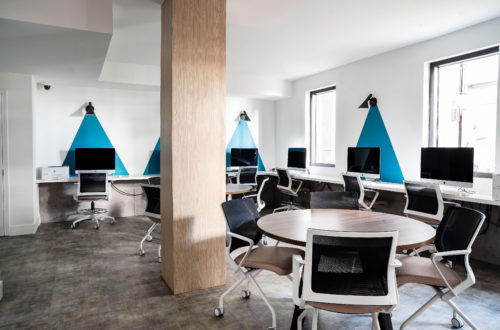 Tasked with creating a unique and functional living space for those attending the University of Southern California, Pacific Office Interiors partnered with Level Up Interiors to use DeskMakers product on this recent installation. USC West 27th Place is a LEED Platinum Certified apartment community near USC that provides a welcoming, healthy, and cheerful environment for students. Pacific Office Interior’s goal was to promote a relaxing atmosphere conducive to learning by creating comfortable living areas, collaborative and private learning spaces, as well as functional offices for staff and onsite management.