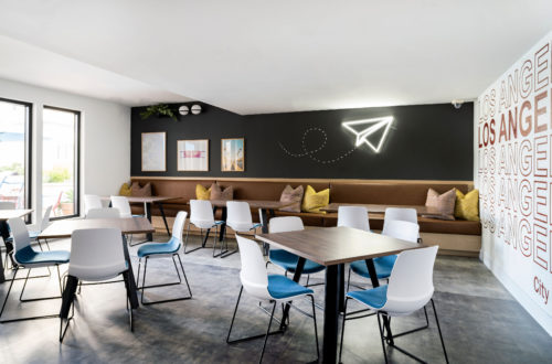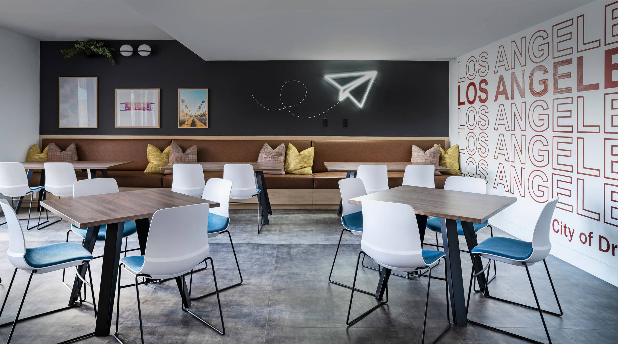 Tasked with creating a unique and functional living space for those attending the University of Southern California, Pacific Office Interiors partnered with Level Up Interiors to use DeskMakers product on this recent installation. USC West 27th Place is a LEED Platinum Certified apartment community near USC that provides a welcoming, healthy, and cheerful environment for students. Pacific Office Interior’s goal was to promote a relaxing atmosphere conducive to learning by creating comfortable living areas, collaborative and private learning spaces, as well as functional offices for staff and onsite management.